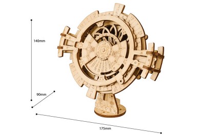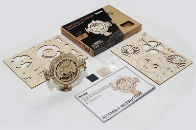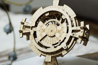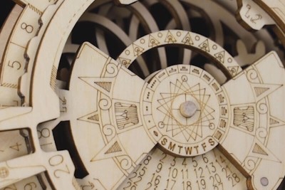 Le Calendrier perpétuel peut afficher sur son cadran toutes les dates jusqu'en 2040 ! Un moyen authentique d'accéder à son calendrier. Faites pivoter les axes pour sélectionner votre date, et c'est parti vous avez accès au jour mois et année que vous souhaitez. À quoi ça sert ? À nous émerveiller ! La mécanique en bois est tellement précise que ce puzzle 3D est en réalité une véritable pièce à exposer.