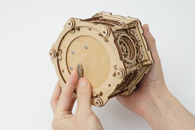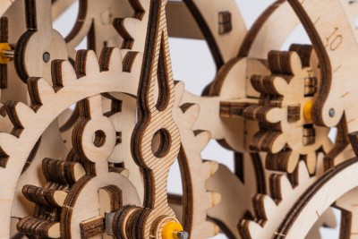 La Pendule en bois est le puzzle 3D idéal. Le mouvement des engrenages est tout simplement hypnotique ! La mécanique en bois est tellement précise que ce puzzle 3D est en réalité une véritable pièce à exposer. Elle sublimera par sa finesse votre décoration d'intérieur, et surtout c'est un objet que vous avez assemblé vous-même.