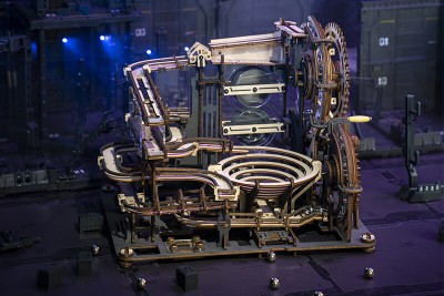 Ce circuit à bille Marble Night City en bois est basé sur une grande ingénierie humaine.