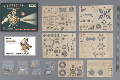 Découvrez le premier Puzzle 3D en bois projecteur de cinéma au monde ! Entièrement fonctionnel ce puzzle 3D pour adulte vous fera redécouvrir la magie du cinéma en noir et blanc.