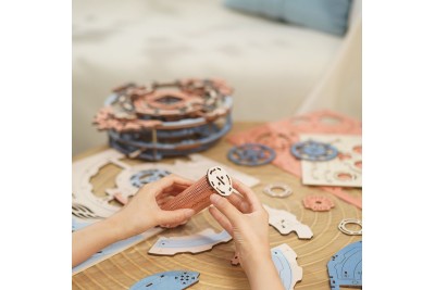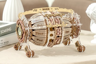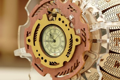 Le calendrier mécanique a des perspectives magnifiquement conçues avec des gadgets mécaniques à construire soi-même. C'est une vraie horloge qui indique l'heure exacte.